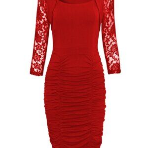 NWT Tam Ware Ruched Detail Bodycon Dress with Square Neck and Lace Sleeves Small
