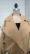 Stylish tan jacket featuring black leather accents at the wrist, pleating details at the sleeve, zipper detailing, & pockets Perfect for a chic and modern look