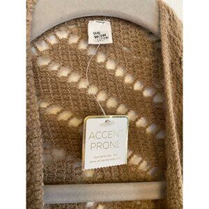 NWT Tan Crochet Open-Front Fringe Kimono Cardigan Shawl