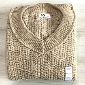 NWT!! Tan V-Neck Balloon Sleeve Sweater By SO (Sonoma) in Medium