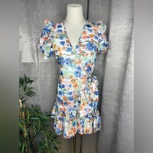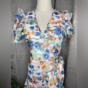NWT Tanya Taylor Bailey Mini Wrap Dress Multicolor Floral Print Sz 0