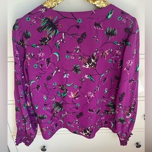 NWT Tanya Taylor Clio Print Floral 100% Silk Bell V-Neck Sleeve Blouse