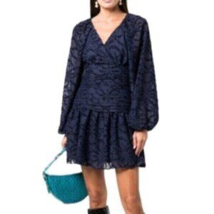 NWT Tanya Taylor Eva Navy Blue Puff Sleeve Mini Dress
