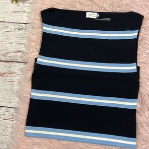 New with tags Tanya Taylor black blue and white colored Zanita knit striped shell tank
