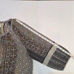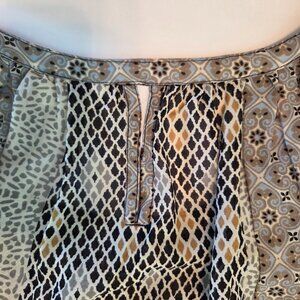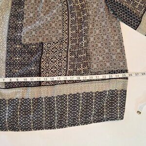 NWT - Tanzara Boho Patchwork Blouse, Women’s 2X, Black/Taupe/Soft Blue/Cream
