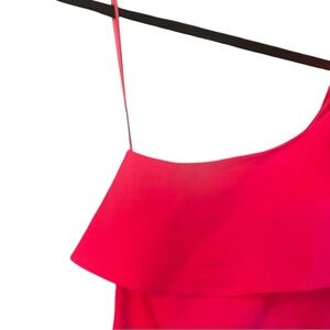 Turn heads in this stunning Tara Jarmon dress! New with tags, this vibrant hot pink one-shoulder dress features a dramatic ruffle detail for a chic, feminine statement. Crafted by the renowned French designer, it's perfect for cocktail parties, weddings, or any special occasion.