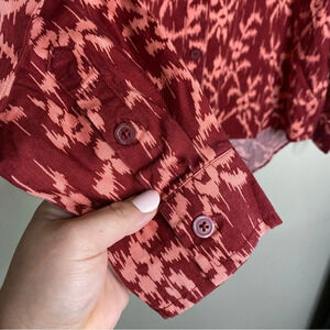 ✨NWT Target Knox Rose Burgundy Hibiscus Print Button Front Shirt Plus Size XXL