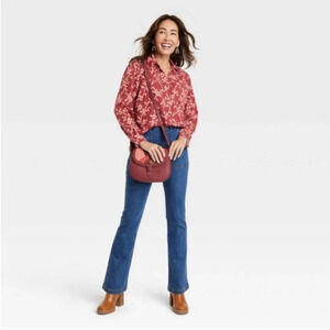 ✨NWT Target Knox Rose Burgundy Hibiscus Print Button Front Shirt Size XL