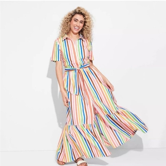 NWT Target Pride Striped Woven Shirt Dress Size Small Colorful Maxi Collared