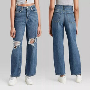 ✨NWT Target Wild Fable Medium Wash Super High Rise Distressed Baggy Jeans 0/25