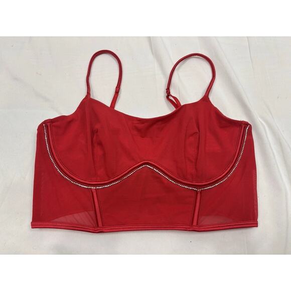 NWT Target Women's Red Satin Rhinestone Lingerie Corset Bra Top Auden Size M
