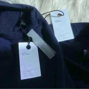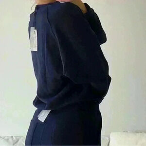 NWT Tate Jones Lounge Cozy Set Crew Sweatshirt + Side Slit Sweat Navy Si…