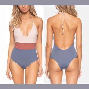 NWT Tavik [ Small ] Chase Plungeโ Colorblock One Piece Swimsuit Muted Indigo
