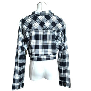 NWT Taxi Jacket Womens XL Black White Plaid Cropped Long Sleeve Flannel