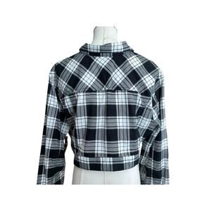Taxi Jacket Womens XL Black White Plaid Cropped Long Sleeve Flannel Button Up