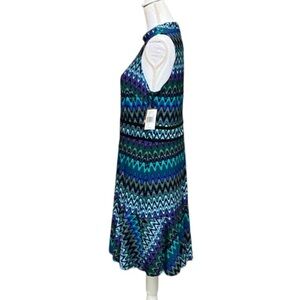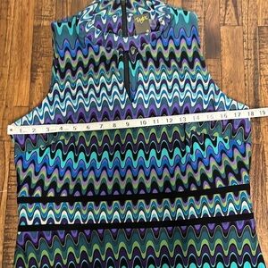 Taylor Dress Halter Neck Sleeveless midi with swing hem Peacock Colors New with tags sz 12