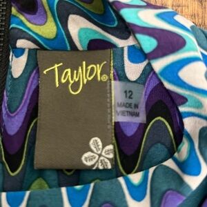 NWT Taylor Dress Halter Neck Sleeveless midi with swing hem Peacock Colors sz 12