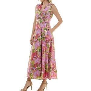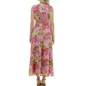 NWT Taylor Floral Print Voile Pleated V-Neck Sleeveless Maxi Dress - Size 8