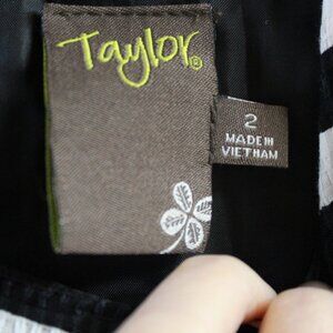 NWT Taylor horizontal striped dress. Colors are black/white with some bright green near bottom.