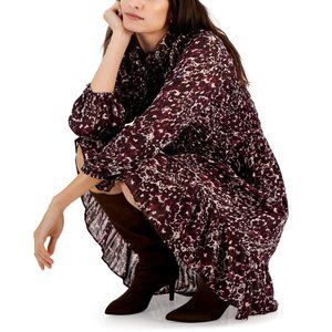 NWT Taylor Mock-Neck Smocked Long-Sleeve Dress 3016M 16 Mauve Plum Purple