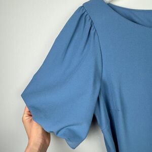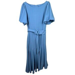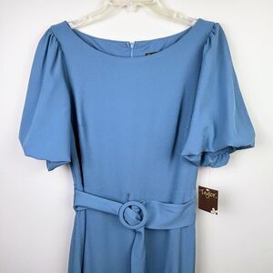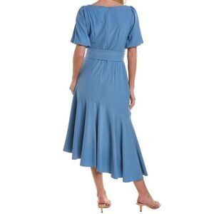 NWT Taylor Ruffle Midi Dress Short Sleeve Asymmetrical Hem Belted Blue Formal 8