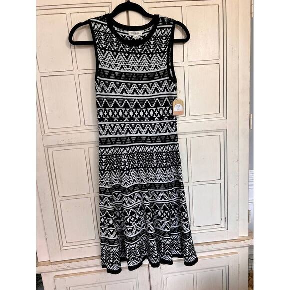 New with tags Taylor & Sage black and white sleeveless sweater dress. Super cute and lots of stretch. Measures 14” from armpit to armpit when not stretched at all. 14” across the waist and 39” long.