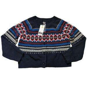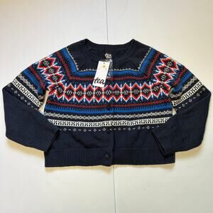 NWT Tea Collection Blue Indigo Fair Isle Cardigan Sweater 6-7Y