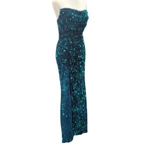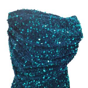 NWT Teal Strapless Sequin Evening Gown with Corset Back on Velvet Fabric