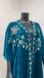 Beautiful teal velvet kimono cardigan with detailed floral embroidery along the front and shoulders.