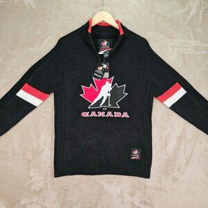 NWT Team Canada Hockey Official Licensed Long Sleeve Quarter Zip Sweater Black