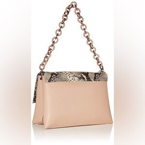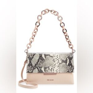 NWT Ted Baker Alani Snake Embossed Leather Shoulder Bag Taupe Pink Chain Cross
