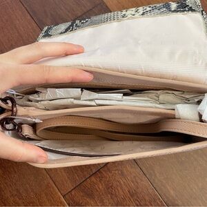 NWT Ted Baker Alani Snake Embossed Leather Shoulder Bag Taupe Pink Chain Cross