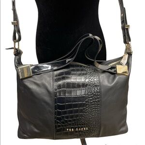 NWT Ted Baker Amelia Satchel Tote Black leather bag with gold hardware