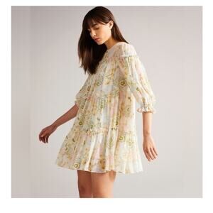 NWT Ted Baker Bellona Floral Tiered Trapeze Mini Dress US Size 4