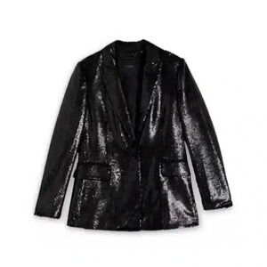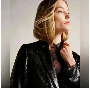 NWT Ted Baker Black Millei Matte Sequin Relaxed Fit Blazer Size 1/4