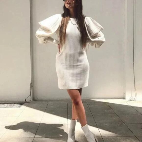 NWT Ted Baker Extreme Sleeve Ribbed Knit Wilowaa Dress in Natural