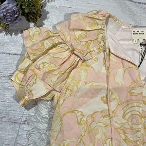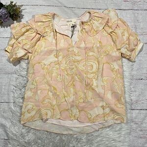 New with tags Ted Baker Frisis pink, yellow, and white colored MIB frill baroque chiffon printed top