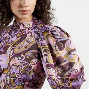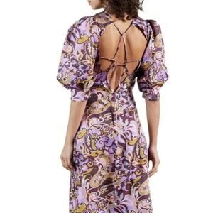 NWT Ted Baker HARIAT Silk Midi Purple Floral Puff Sleeve Open Back US 2