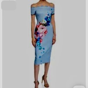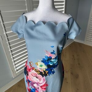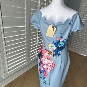Gorgeous NWT Ted Baker Dress in a beautiful light blue with gorgeous floral print. Ted Baker size 3, which converts to a size 8 in US sizing. Too big for me, I purchased then lost weight and needed a smaller size. Perfect for the Kentucky Derby, formal event, wedding, church, date night! according to Ted Baker size chart, here are the dimensions: Bust 37, waist 30, Hips 38.5