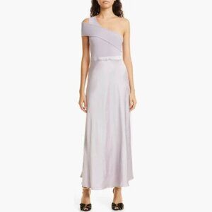 NWT Ted Baker Ivena Lilac Asymmetric knit bodice Dress With Satin Silk