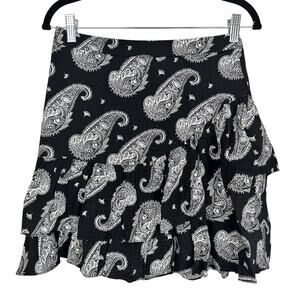 NWT Ted Baker Lanee Printed Tiered Frill Mini Paisley Black Skirt Size XS 0-2
