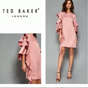 NWT Ted Baker London Eicio Layered Ruffle Frill Detail Mini Dress US 12 Pink