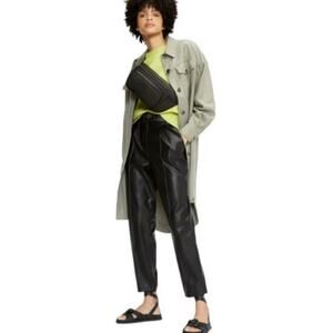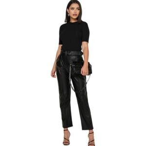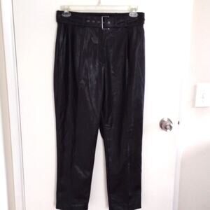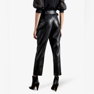 Ted Baker London Faydell Black Faux Leather Pleather Belted Detail High Waist Trouser 8 NWT Pants Moto Pleated Minimalist Chic Streetwear Business Casual Contemporary Edgy Bikercore