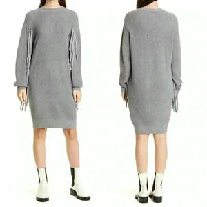 NWT Ted Baker London Friidah Long Sleeve Cotton & Wool Blend Sweater Dress Grey