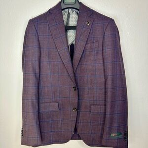 🔥 NWT Ted Baker London Men’s Blazer – Plum Check Windowpane – Size 38R