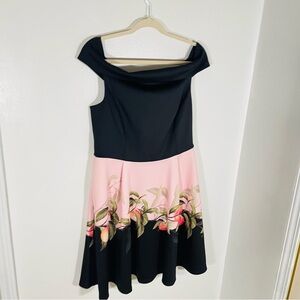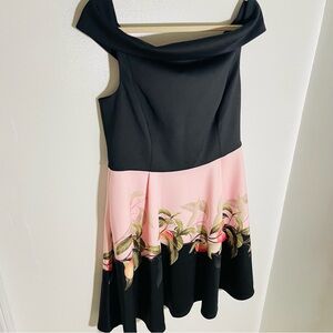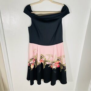 NWT Ted Baker London Peach Blossom Off-Shoulder Dress Black Floral Size 10