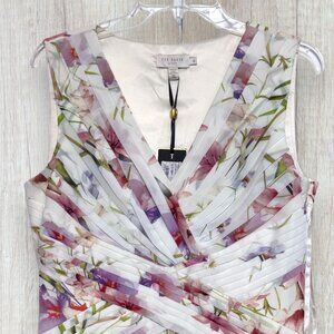 NWT Ted Baker London Risha Mirrored Tropics Pleated Floral Dress Ivory Multi 4