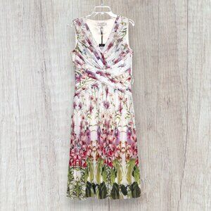 Absolutely stunning Ted Baker London “Risha” Mirrored Tropics pleated dress. This sleeveless dress features a flattering crisscross bodice with a deep V-neckline and allover mirrored floral print. The pleated skirt flows beautifully, making it perfect for weddings, garden parties, or special occasions. New with tags, originally sold at Nordstrom.
