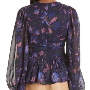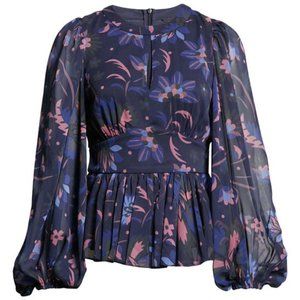 NWT Ted Baker London Stephanie Floral Print Keyhole Detail Blouse in Navy size 1