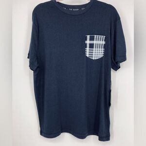 NWT Ted Baker London Men’s Checkered Pocket Navy Blue T-Shirt Size L Very Soft and Comfy